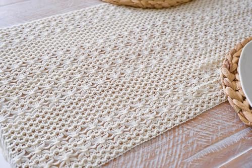 AREXOL - مفرش طاولة مكرمية لطاولة الطعام ووحدة التحكم والتلفزيون وخزانة الملابس، قطعة ديكور للمنزل مقاس 130 × 45 سم، مظهر انيق دافئ للمنازل المصرية الكلاسيكية الحديثة