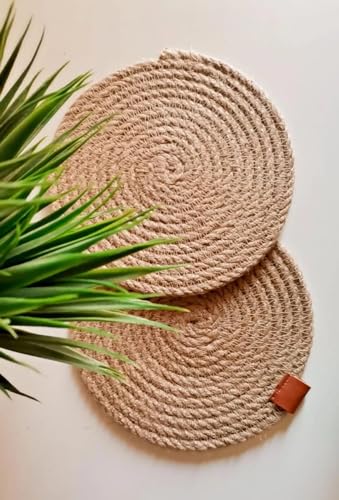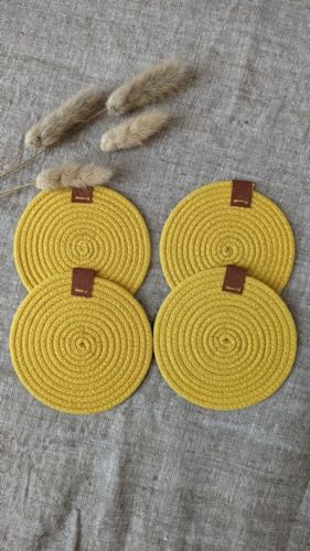 HAYAH LABORATORIES - قواعد اكواب منسوجة يدويا من ترينديز/ بوهو ديكور، 10 سم D - قواعد اكواب مصنوعة يدويا