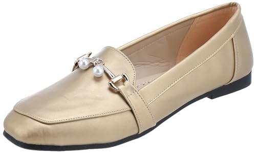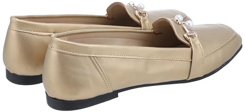 MADYOS - حذاء باليه فلات بمقدمة مغلقة وكعب مقاس 1 سم ونعل مطاطي للنساء من ماديوس، لون ذهبي، مقاس 41 EU، موديل R15-79
