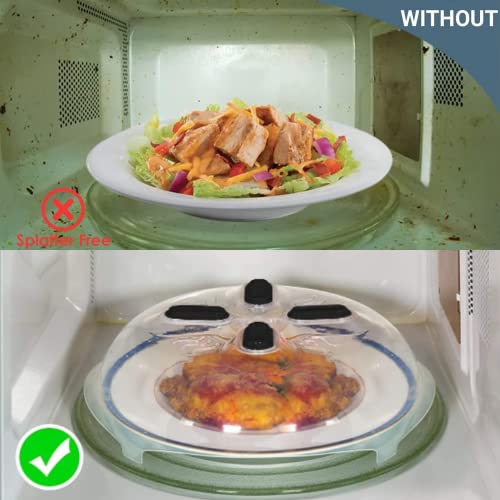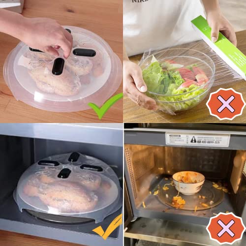 - 🥘【يمنع الرذاذ】 - يمكن لغطاء الطعام لفرن الميكروويف أن يمنع تناثر السائل من الطبق الذي سيؤدي إلى تلويث الميكروويف. كما تساعد فتحات البخار المدمجة على تسخين الطعام بالتساوي وتسمح للرطوبة بالخروج مما يساعد على تسريع عملية الطهي من خلال تركيز حرارة الميكروويف. ملاحظة: لا يستخدم في وضع الشواء ولا في الميكروويف لمدة أطول من 10 دقائق بشكل مستمر أثناء الطهي أو فك التجميد.