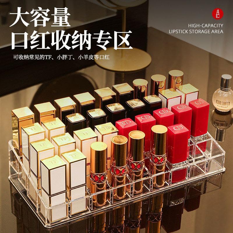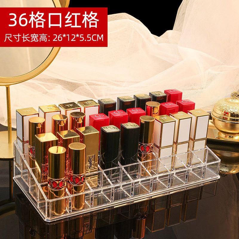 - يتميز منظم الميكب بتصميم يحتوي على 36 خانة مخصصة لتنظيم وترتيب مستحضرات التجميل.