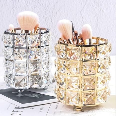 Generic - حوامل فرش المكياج مع لمسات كريستالية، ذهبي، قطعتين