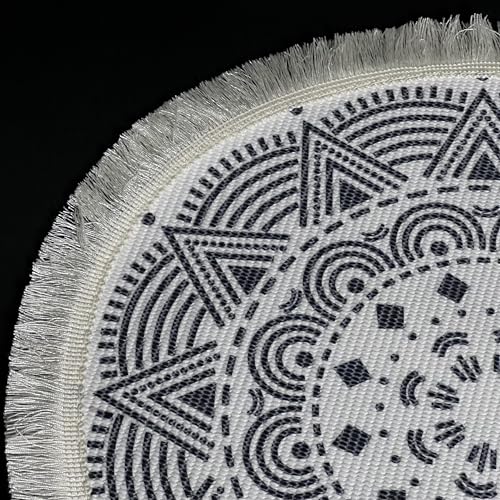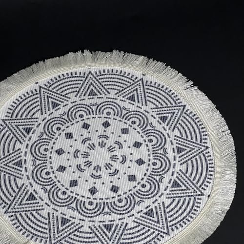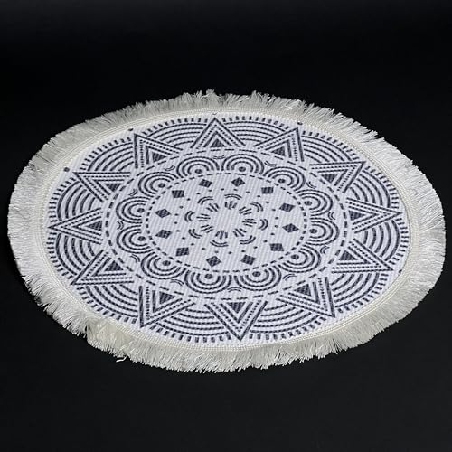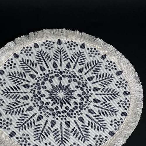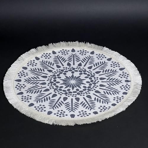 Generic - كوستر عثماني دائري بتصميم ماندالا، أبيض وأزرق داكن مع حواف مهدبة، طراز تقليدي