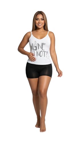 Generic - MANIKAN women's Pajama Set, White Cami Top with Black Shorts, Spaghetti Strap Sleepwear, Drawstring Waist