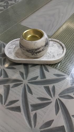 - تصميم أنيق: حامل بخور خرساني جميل بمظهر رخامي يتميز بنمط رخامي أبيض ورمادي متطور مع لمسة نهائية داخلية فاخرة باللون الذهبي.