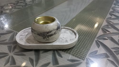 Generic - مجموعة حامل بخور خرساني بمظهر رخامي ومبخرة مزخرفة من قطعتين مع جزء داخلي ذهبية، لون أبيض
