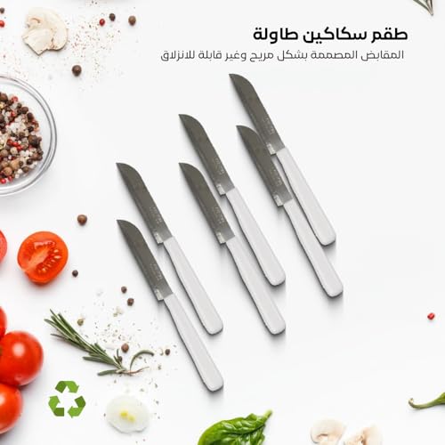 MAROB - طقم سكاكين متعددة الاستخدامات بشفرات مسطحة 9 سم لمختلف الأطعمة مقاومة للصدأ وصديقة للبيئة من 6 قطع صنعت في إيطاليا من ماروب باي ماريتي، أبيض