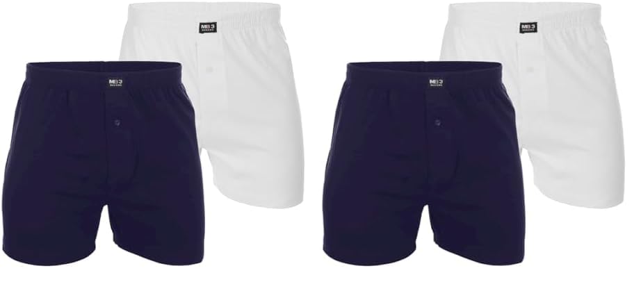 MB3 - طقم بوكسر تانجو شورت قطن للرجال من ام بي 3، لون ابيض وكحلي، مقاس 2XL (عبوة من قطعتين)