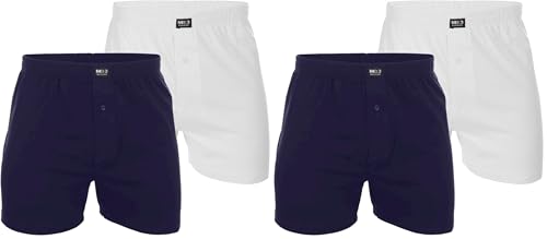 MB3 - طقم بوكسر تانجو قصير من القطن مكون من قطعتين للرجال من ام بي ثري، لون أبيض وكحلي، مقاس سمول