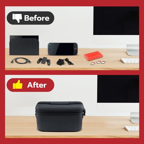 - حل تخزين الكل في واحد: يتميز بتصميم مزدوج الطبقات مع طبقة علوية لجهاز نينتندو سويتش 2 والطبقة السفلية الواسعة لوحدة التحكم وقاعدة الشحن والشاحن وأكثر من ذلك، مما يوفر تنظيمًا فائقًا مقارنة بحالات التخزين العادية.