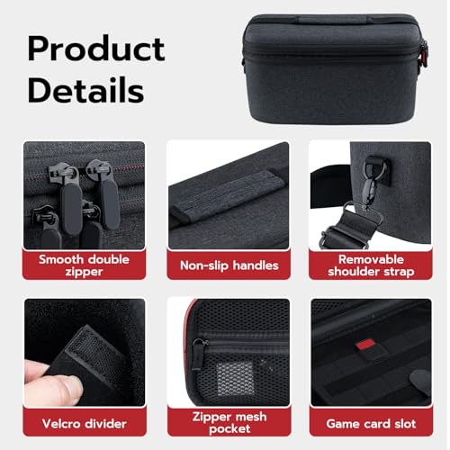 - محمول ومناسب للسفر: مصمم للاعبين أثناء التنقل مع مقبض حمل متين وحزام كتف سميك قابل للتعديل، مما يجعل من السهل نقل جهاز سويتش 2 إلى البطولات أو الأحداث.