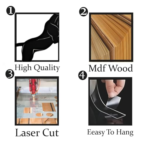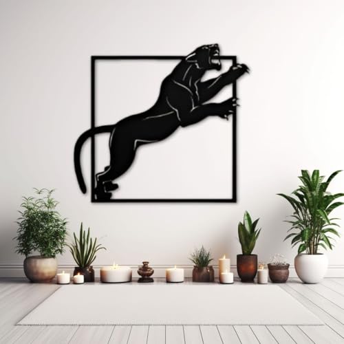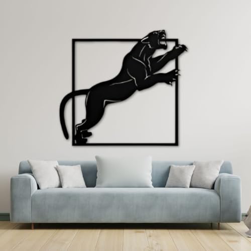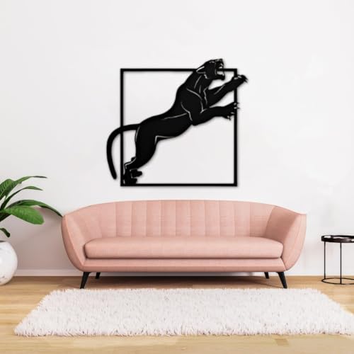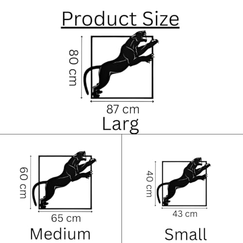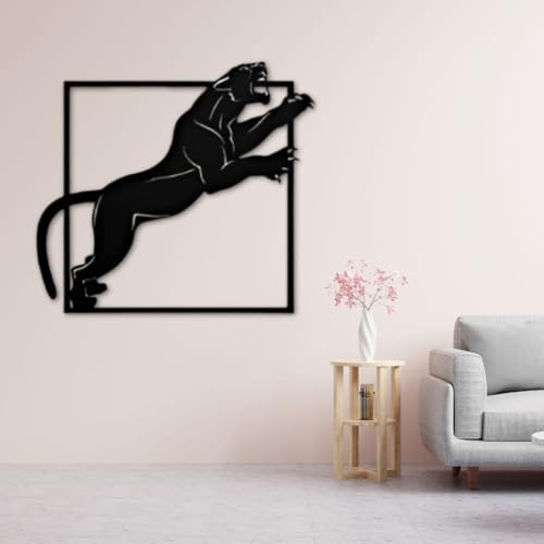 Generic - لوحة فنية جدارية بتصميم نمر قفز من خشب ام دي اف بلون اسود، ديكور منزلي عصري، متوفرة بـ3 احجام - L 87 × 80 سم، M 65 × 60 سم، S 43 × 40 سم (كبير)