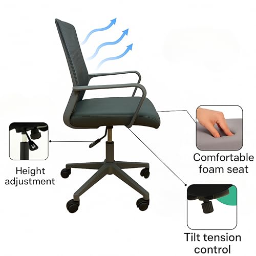 - 【كرسي مريح لساعات العمل الطويلة】 يتميز الكرسي بمسند ظهر داعم وقماش شبكي مزود بمسامات للتهوية يضمن التهوية المناسبة، مما يبقيك منتعشًا ومرتاحًا أثناء ساعات العمل أو الدراسة الطويلة يساعدك على تحسين إنتاجيتك وراحتك.