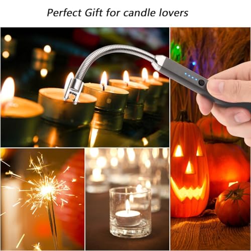MEIRUBY - ولاعة كهربائية للشموع طويلة قابلة لإعادة الشحن بمنفذ USB مقاومة للرياح بدون لهب ومناسبة للشموع والتخييم والشواء مثالية لأعياد ميلاد النساء والأمهات والزوجات والرجال من ميروبي، لون أسود/رمادي، قطعتين