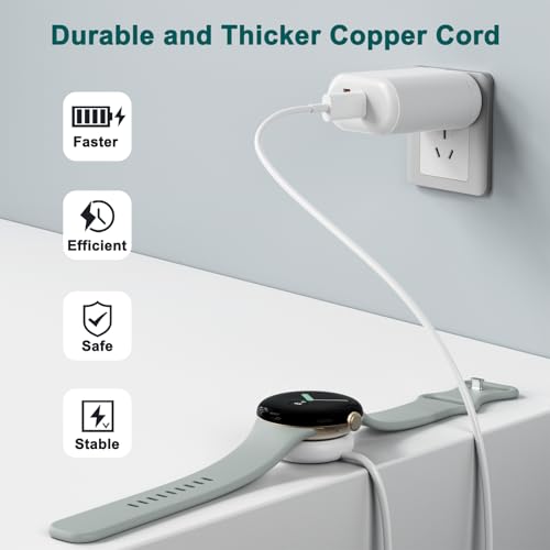 - شحن آمن وسريع: يحتوي كابل شاحن ساعة جوجل بيكسل على منظم جهد داخلي لحماية ساعتك من التلف بسبب التيار الزائد عند توصيلها بمصدر الطاقة. اختبارات مقاومة العزل والمتانة الصارمة تخلق محول شحن سريع وفعال ومستقر.