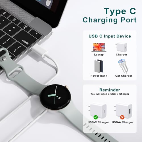 Meliya - ميليا كيبل شحن لساعة جوجل بيكسل من ريبالسيمنت، كيبل شحن يو اس بي نوع سي وحامل قاعدة شحن لساعة جوجل بيكسل 3.3 قدم (ابيض)