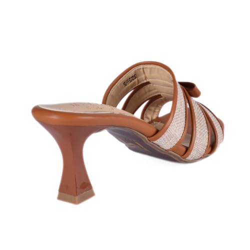 Melouk - womens Embossed Leather Heel Slipper-Orange Heeled Sandal