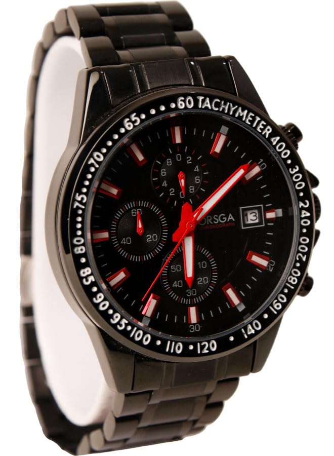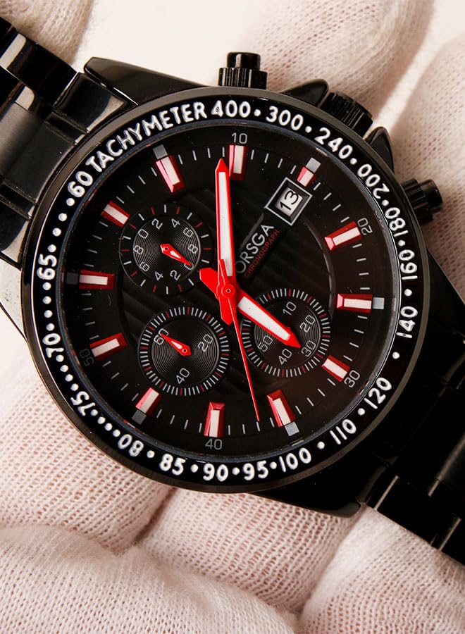 Generic - ساعة يد كاجوال للرجال- كرونوغراف - كوارتز- باند استانلس ستيل اسود - مينا سوداء - OR01
