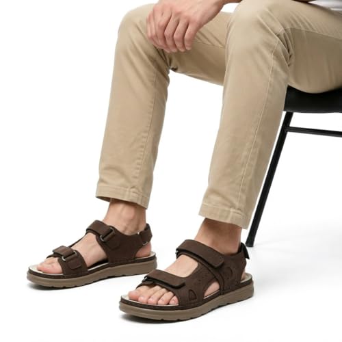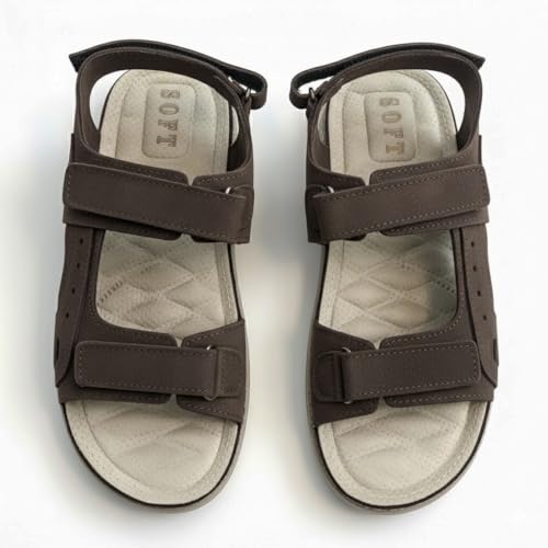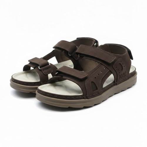 Generic - صندل مريح لتقويم العظام للرجال - تصميم جلد عملي مع أشرطة فيلكرو مزدوجة قابلة للتعديل وحزام كعب - نعل خفيف الوزن مضاد للانزلاق - 50
