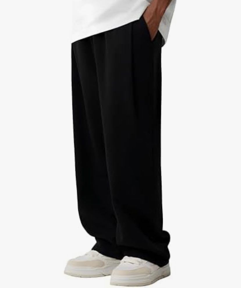 Generic - بنطلون كتان رجالي واسع، قياسات كبيرة من ٤٥ إلى ٩٠ كجم، أسود