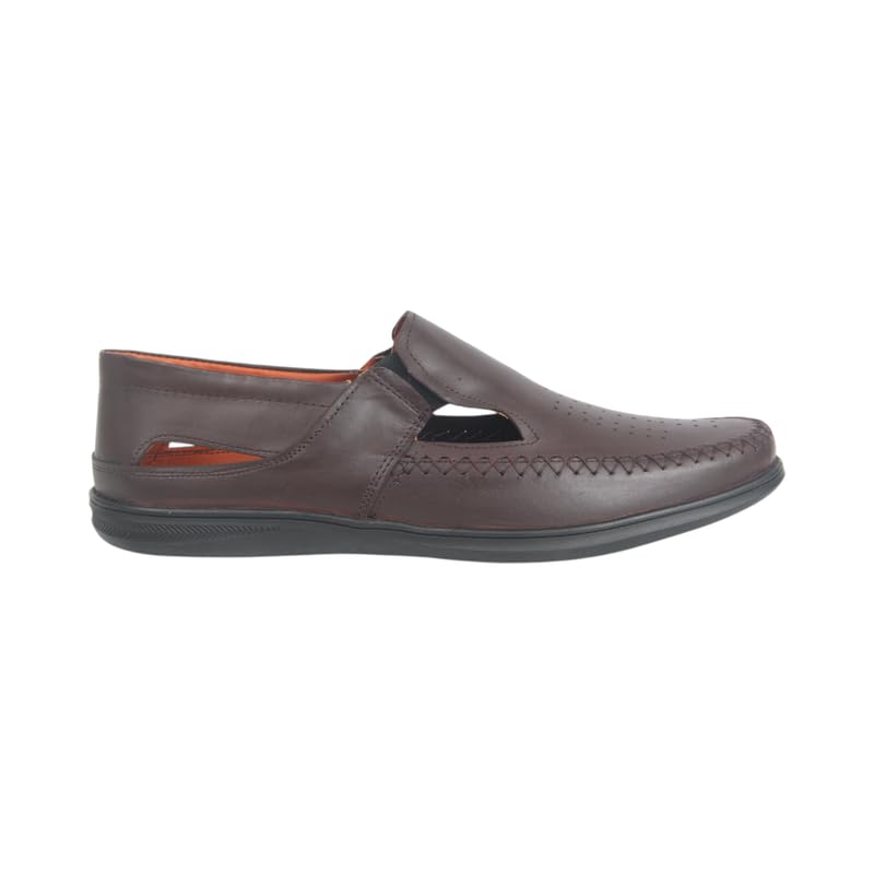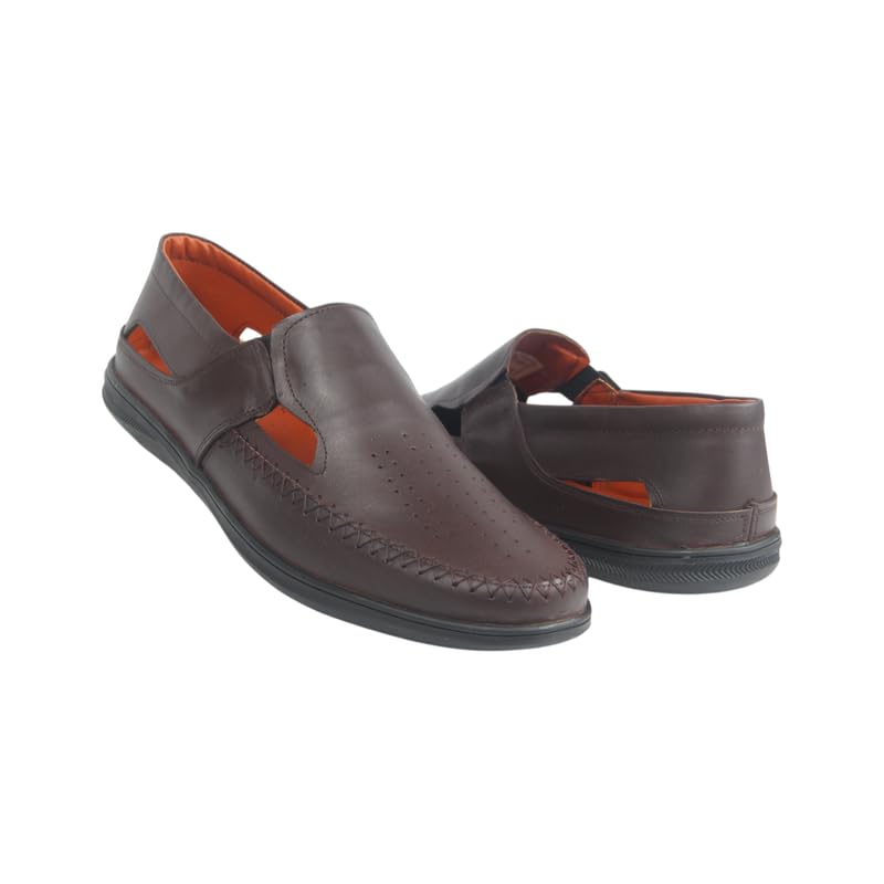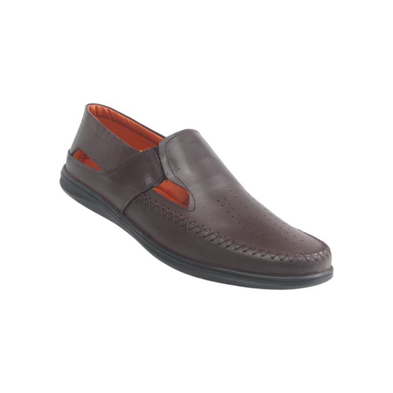 Generic - حذاء شمواه مسطح للرجال من الجلد الطبيعي، جزء علوي مخرم 507