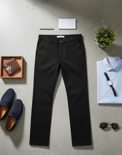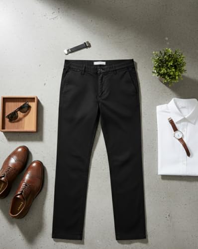 Motevia - بنطلون جبردين قطن ناعم مريح للرجال - قصة ضيقة (Slim) مع مطاطية عالية (Lycra) - مثالي للعمل والخروجات (Black, 38)