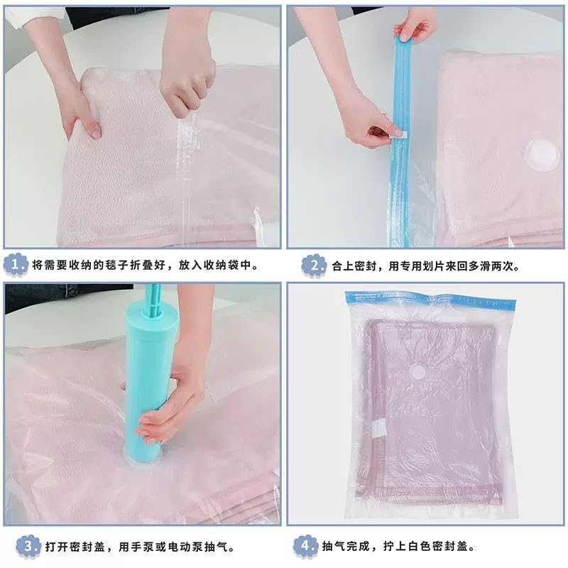 - يعمل كيس التخزين على فراغ الهواء بواسطة استخدام المكنسة الكهربائية أو المنفاخ اليدوي أو منفاخ السيارة.