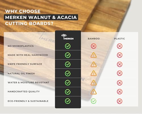 Merken - الواح تقطيع من خشب الجوز الفاخر للمطبخ من ميركين - لوح تقطيع خشبي قابل للعكس مع اخدود عصير، مجموعة الواح تقطيع خشبية كبيرة جدًا وXL للحوم والخضروات والخبز