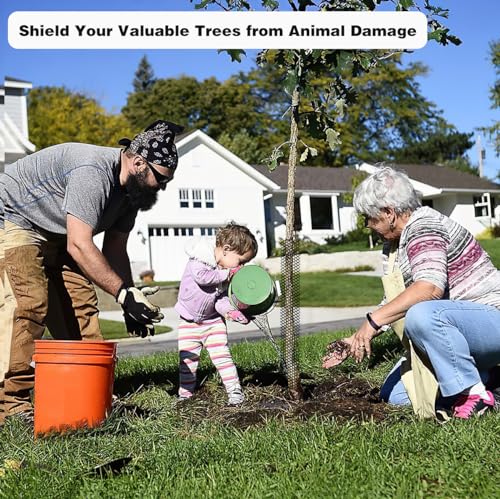 - [تصميم يمكن تعديله حسب الحاجة]: يبلغ طول واقي الشجرة حوالي 7 م بعرض 40 سم. يتيح لك تقليم الشجرة وفقًا لحجمها، ثم لف شبكة النباتات حول الجذع وربط واقي الشجرة بإحكام باستخدام روابط الكابلات.
