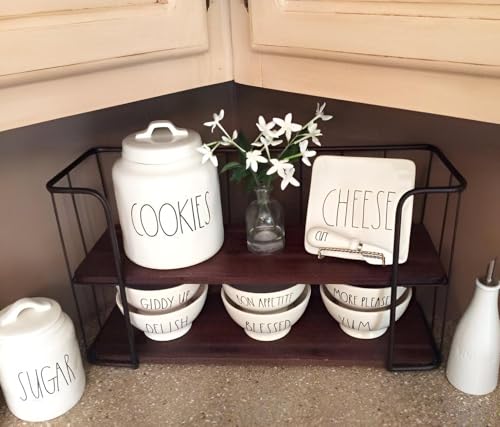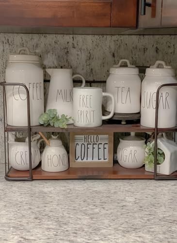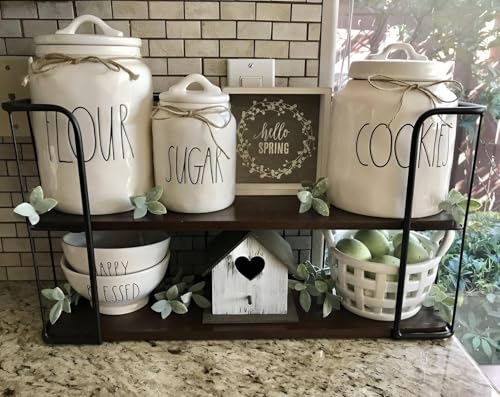 Generic - ارفف معدنية وخشبية - منظم توابل متعدد الاغراض من طبقتين لطاولات المطبخ، رائع لمحطات القهوة وتخزين البرطمانات، يغير جمال مطبخك