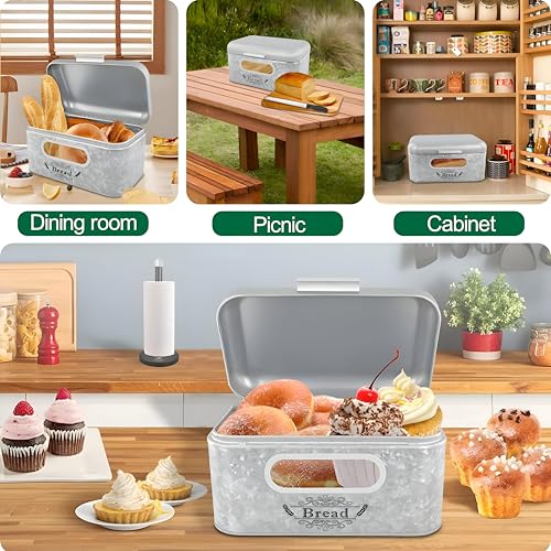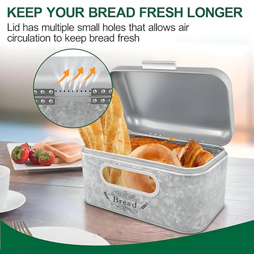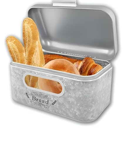 - ارتقِ بمطبخك مع صندوق خبز معدني أنيق وعصري مطلي بالزنك، مصمم لمزج المظهر الجمالي الخالد والوظائف الفائقة للاستخدام اليومي.