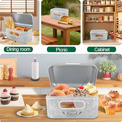 Generic - صندوق خبز معدني - تخزين عصري مجلفن لسطح الطاولة مع غطاء، تصميم عالي السعة للخبز الطازج واكسسوارات السكين، متانة على طراز بيت المزرعة. (موديل 1)