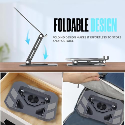 Generic - حامل معدني للاب توب والتابلت T10، دوران 360 درجة، ارتفاع قابل للتعديل، قاعدة ثابتة، هيكل متين يدعم جميع اجهزة التابلت - مثالي للاستخدام الامن والمريح في المنزل او المكتب او محطة العمل.