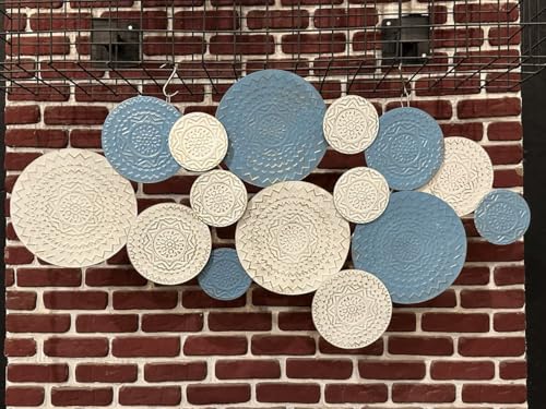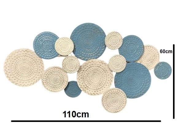 Generic - لوحة ديكور حائط معدنية – تصميم دوائر هندسية باللون الأبيض وازرق فاتح – ديكور بوهيمي عصري للمنازل والمكاتب – حجم 60×110 سم – تصميم ثلاثي الأبعاد