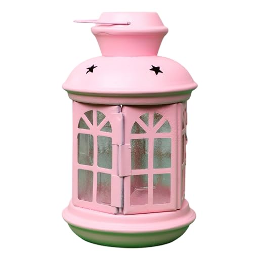 Generic - فانوس رمضان معدني، باللون الوردي، مصنوع من البلاستيك، الأبعاد: 19 × 12 × 11 سم