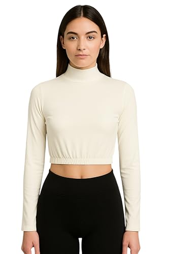 Meza - بلوزة نسائية بياقة عالية، قصة محصورة - ستوماك نسائي طويل الكم تصميم كروب مرن أنيق للاستخدام اليومي والرياضي من ميزا