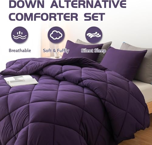 Generic - لحاف سرير شتوي من المايكروفايبر مع حشوة الفايبر البديل يشبه الريش كبطانية ولحاف للسرير لون موف مقاس 2.2 × 2.4 متر
