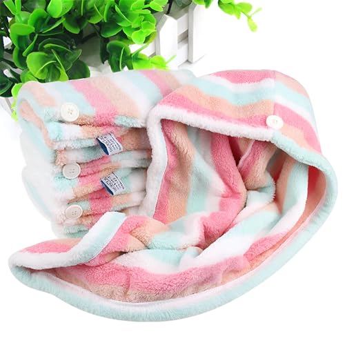 Generic - منشفة شعر من الألياف الدقيقة سريعة الجفاف وناعمة وذات امتصاص استثنائي مصممة بزر للشعر الطويل والمجعد تتميز بشكل ملتوي لمنع التجعد 1 منشفه ألياف دقيقة متعدد الألوان