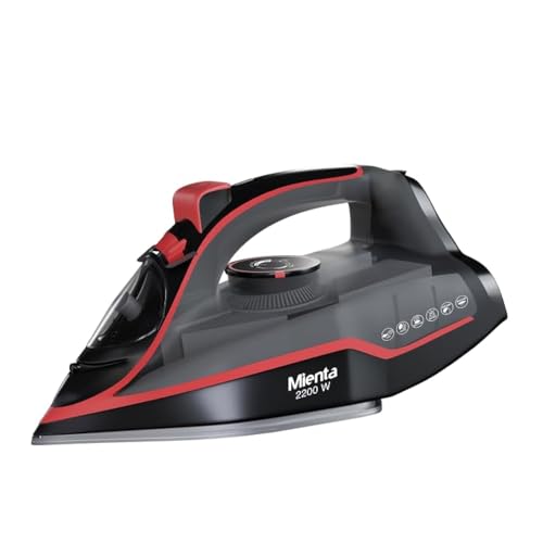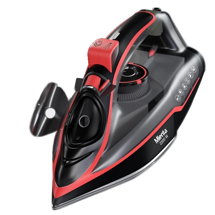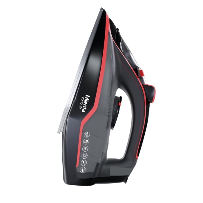 Mienta - مكواة بخار لا تجعد الملابس بقدرة 2200 وات من مينتا، بلون أسود/أحمر