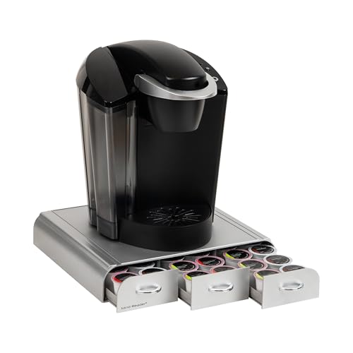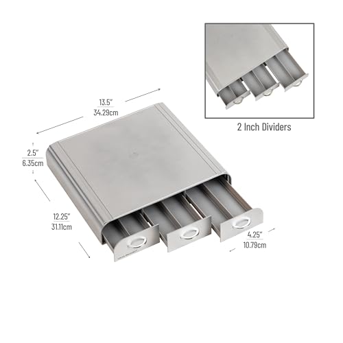 Mind Reader - درج بـ3 أقسام لحصص القهوة الفردية TRAY6-SIL من مايند ريدر، سعة 36 كبسولة، منظم سطح طاولة، قاعدة ماكينة تحضير القهوة، طول 31.1 سم × عرض 34.2 سم × ارتفاع 6.3 سم ، مصنوع من البلاستيك، فضي