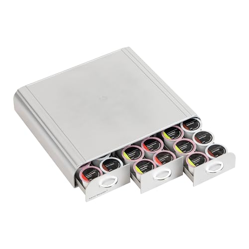 - موفر مثالي للمساحة: احتفظ بجميع حصص القهوة الفردية الـ 36 في مكان واحد. هذا الحامل للأكواب يخزنها بسهولة في ثلاث أدراج. يحتوي كل درج على 12 كبسولة قهوة، مما يسمح لك بتنظيم قهوتك بعناية والعثور عليها وفقًا لذوقك أو علامتك التجارية أو مزاجك.