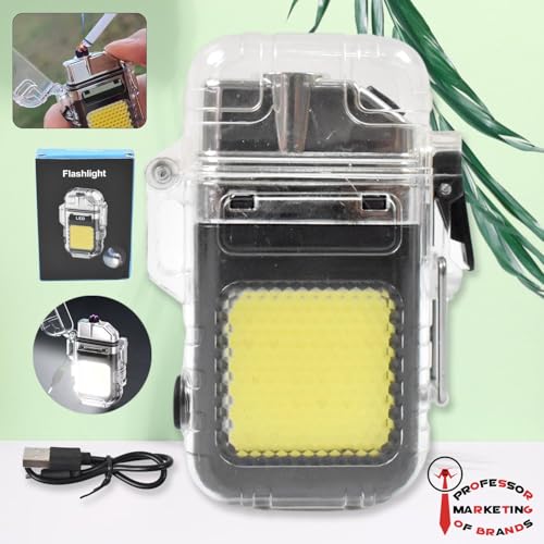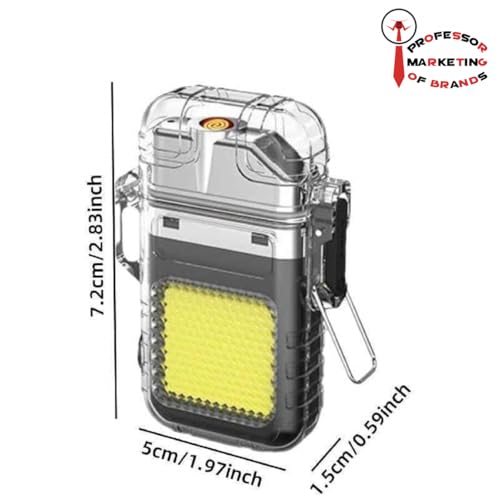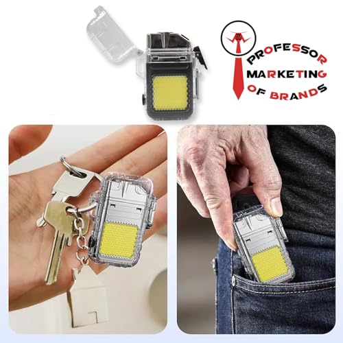 Generic - ولاعة كهربائية صغيرة قابلة لإعادة الشحن عبر USB مع مصباح LED مدمج، مقاومة للرياح والماء، بدون لهب، بحجم الجيب لسلسلة مفاتيح - اسود X شفاف