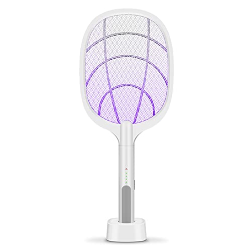 Mistaha - مضرب صاعق حشرات كهربائي 2 بـ 1 قابل لإعادة الشحن بمنفذ USB وإضاءة ليد وشبكة أمان من 3 طبقات لمكافحة الحشرات وقتل البعوض وذباب الفاكهة من ميستاها