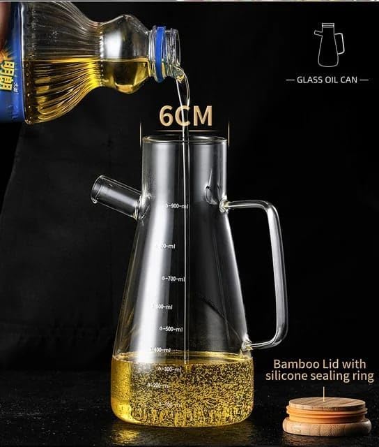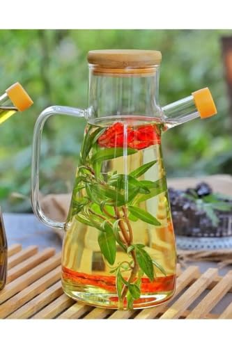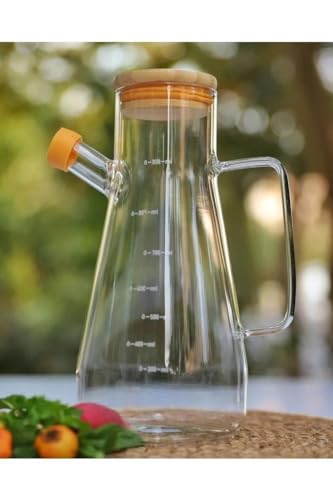 Mithra Life - زجاجة توزيع زيت من زجاج البوروسيليكات بغطاء من الخيزران من ميثرا لايف - قطعتان - سعة 900 مل - MIT1071