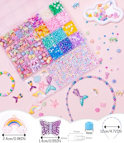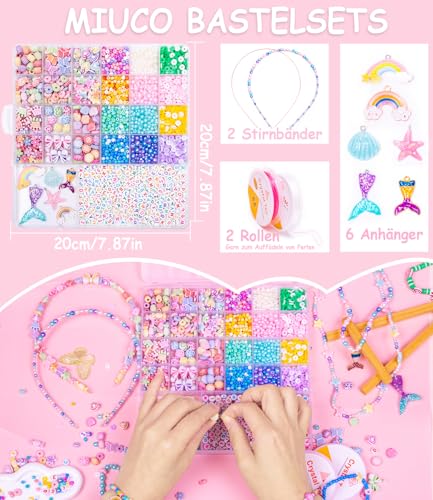 MiuCo - ميوكو هدايا للبنات، مجموعة الحرف اليدوية للاطفال من سن 6 8 11 سنة، خرز للاساور والقلائد، مجوهرات حرفية للبنات 7 9 10 سنوات، مجموعة خرز هدية للبنات بعمر 4 5 سنوات