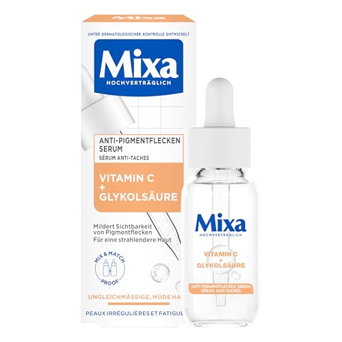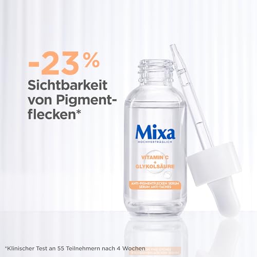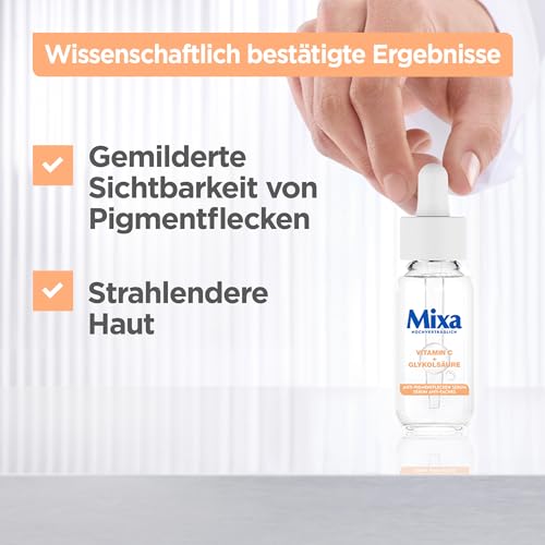 Mixa - سيروم بقعة مضاد للصبغة، للبشرة غير المتساوية والشاحبة والحساسة مع فيتامين سي والنياسيناميد، مناسب للوجه والرقبة، معامل الحماية من الشمس 20، لا يسبب أي حساسية، 50 ملليلتر من ميكسا