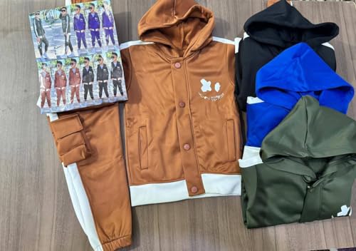 Meza - ميزا طقم أولادي شتوي قطعتين، جاكيت وبنطلون مبطن، خامة مشحم غطس مكستر، بني، مقاسات 8-12، كود 5020