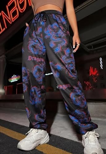 Meza - بنطلون رياضي نسائي واسع بطبعة - تصميم عصري مريح بخصر مطاطي وأساور مرنة - مناسب للكاجوال والرياضة للبنات والنساء من ميزة