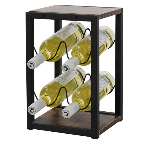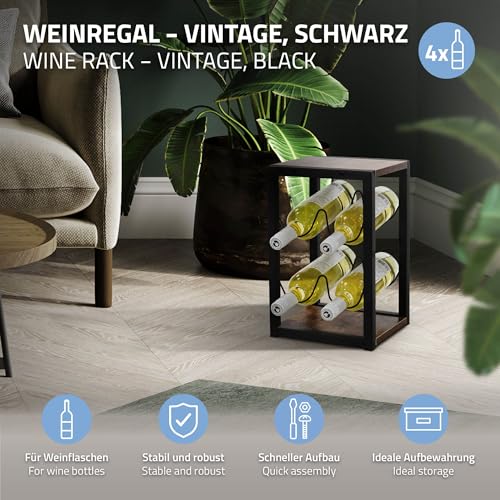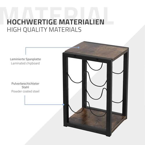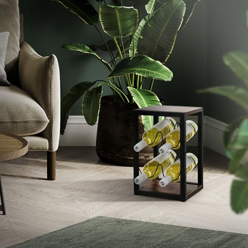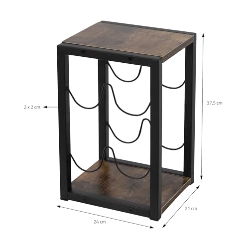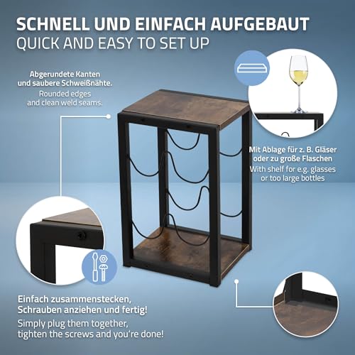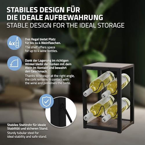 ML DESIGN modern living - رف زجاجات من ام ال ديزاين لـ4 زجاجات، 24 × 21 × 37.5 سم، رف زجاجات فينتاج قائم بذاته مصنوع من الخشب والمعدن، حامل زجاجات صغير، حامل زجاجات، خزانة مشروبات ورف تخزين