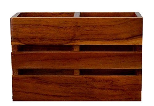 MNH ART - حامل ملاعق خشبي من ام ان اتش ارت، رف ادوات مائدة لطاولة الطعام والمطاعم مع قسمين، بني (مقارنتين)